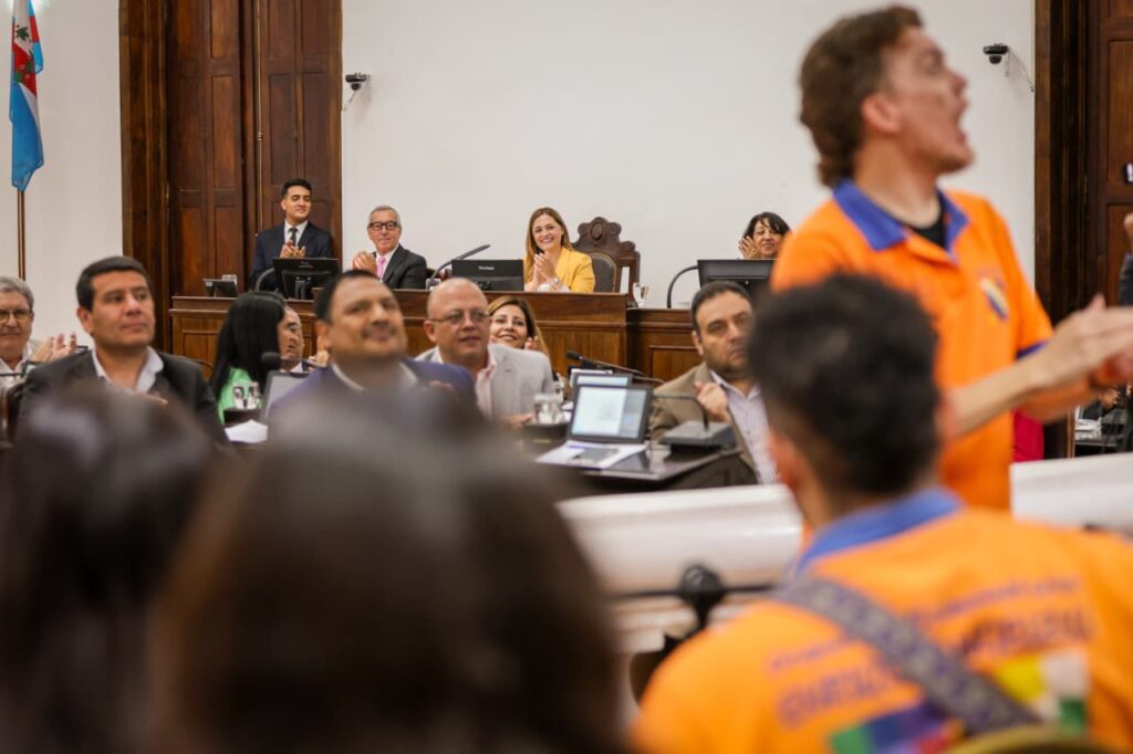 Antes de iniciar el debate parlamentario, el Cuerpo priorizó la entrega de reconocimientos legislativos a destacados referentes sociales de la provincia. En cuarto intermedio, las autoridades de la Cámara y el presidente del Bloque Justicialista, Carlos Machicote y la presidenta del Bloque Norte Grande, Teresita Luna entregaron el reconocimiento “Pedro Ignacio de Castro Barros” a la Orquesta Comunitaria “Enrique Angelelli”, que logró consolidarse como un proyecto cultural en la provincia, llevando así su presentación a instancias nacionales e internacionales.
