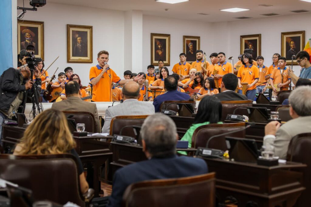 En esta oportunidad, los jóvenes músicos de la orquesta se presentaron en el Recinto junto al director, Ramón “Monchi” Navarro, quien agradeció el Reconocimiento y manifestó: “hay que sembrar para que estos arbolitos puedan dar sombra y se multipliquen”. Luego, deleitaron a los presentes con una breve presentación musical.