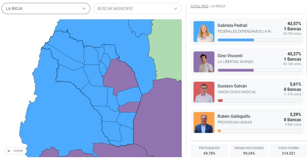 El resultado final fue ajustadísimo —apenas unas décimas de diferencia—, pero el impacto político es profundo. Por primera vez en años, el oficialismo pierde una de sus dos bancas en la Cámara de Diputados de la Nación, cediendo terreno ante el empuje libertario. Esa sola cifra resume un cambio estructural: el poder político en La Rioja dejó de ser monopolio de un solo espacio.