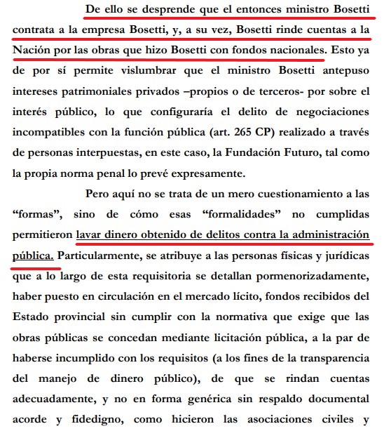 Es el caso del ex ministro Nestor Bosetti, que contrataba a su empresa privada, y el mismo después, rendía cuentas a Nación, según consta en el expediente.