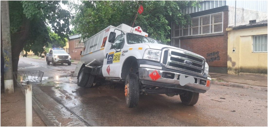 También en la mañana, un camión de transporte de combustible quedó atascado en una zanja de calle Guido, en el barrio Evita. Personal policial y trabajadores de la empresa propietaria del vehículo utilizaron maquinaria pesada para liberarlo. No hubo daños ni heridos.