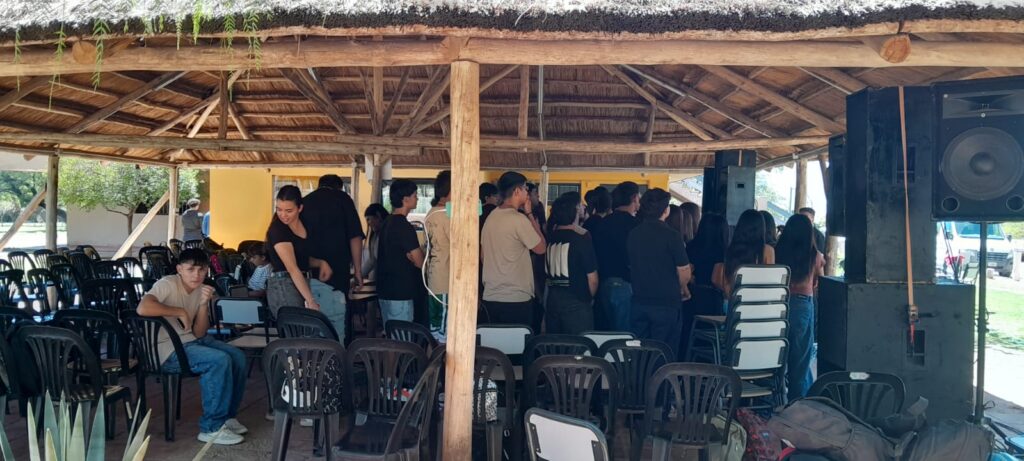 El evento cuenta con la presencia de jóvenes provenientes de Chepes, Patquía y Malanzán, entre otras localidades del sur provincial. En la imagen que acompaña esta nota puede observarse a militantes con remeras negras, identificados como congresales de la juventud de la zona sur, movilizados para respaldar la actividad política.